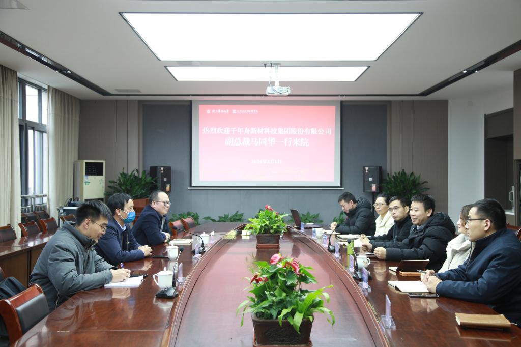 3月1日下午,千年舟新材料科技集團股份有限公司副總裁馬同華一行來院就合作事宜座談交流。化材學院黨政班子成員及相關教師代表出席此次活動。