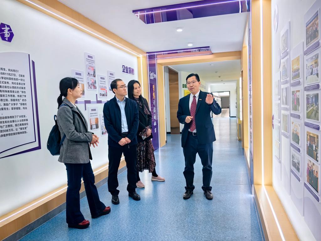 宋厚輝對戴雪飛和馮耀宇一行的到來表示歡迎,帶領一行人參觀了學院實驗室、動物健康檢測中心、教學動物醫(yī)院等場所,并從學院發(fā)展歷程、辦院理念、文化建設、產教融合、國際交流與合作等方面介紹了學院情況,全方位展示了創(chuàng)新創(chuàng)業(yè)型學院的辦學特色和取得的成績。