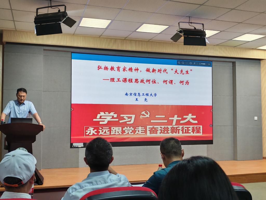 5月23日下午,南京信息工程大學(xué)原黨委副書記、副校長王堯教授應(yīng)邀做客我校第28期“求真講會(huì)”,作題為“弘揚(yáng)教育家精神,做新時(shí)代“大先生”——理工課程思政何位、何謂、何為”的報(bào)告。報(bào)告會(huì)由教發(fā)中心副主任(主持工作)尹國俊教授主持。