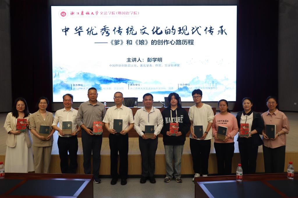 彭學明以“中華優秀傳統文化的現代傳承——《爹》和《娘》的創作心路歷程”為題,分享創作心路歷程。他指出《娘》立體呈現了平凡而偉大母親形象,生動闡釋了什么是“娘”、什么是“孝”、什么是文學形象魅力;《爹》重釋了父親在傳統文化和家國情懷中的重要意義,是宏闊的湘西父輩史詩,更是中華民族的宏闊畫卷、生生不息的人民史詩。講座故事精彩、人生體會深刻,引起廣大師生強烈共鳴。