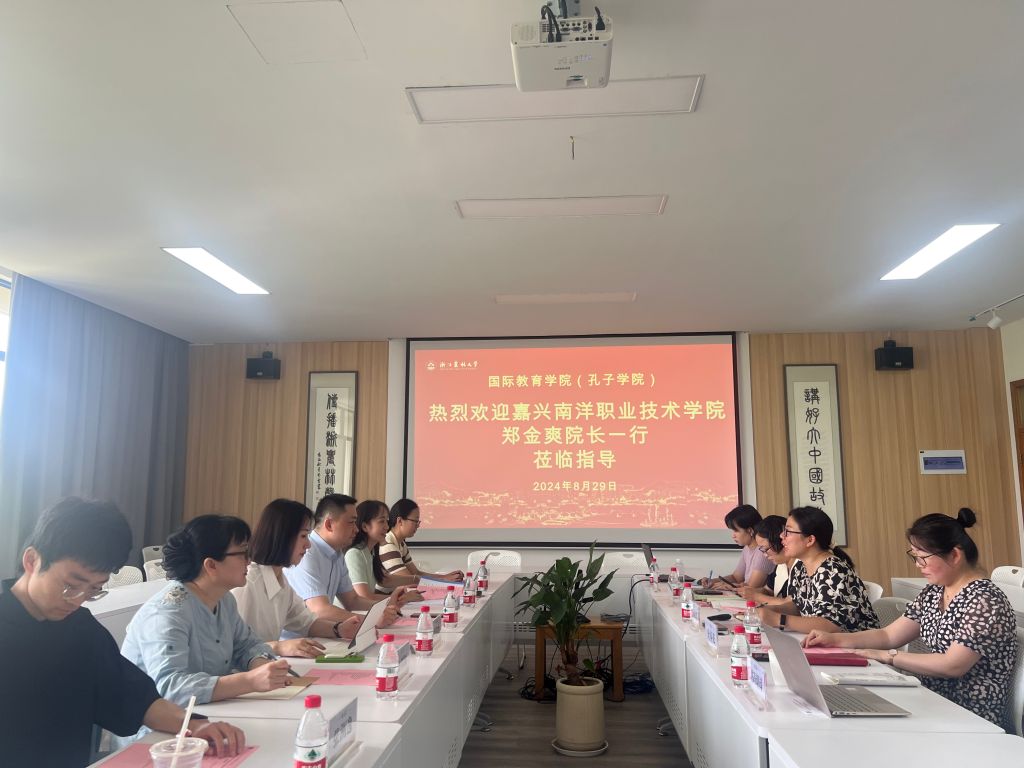 8月29日,嘉興南洋職業技術學院財經與商貿學院院長鄭金爽、副院長李靜怡,國際合作處、國教學院相關負責人參加座談。
