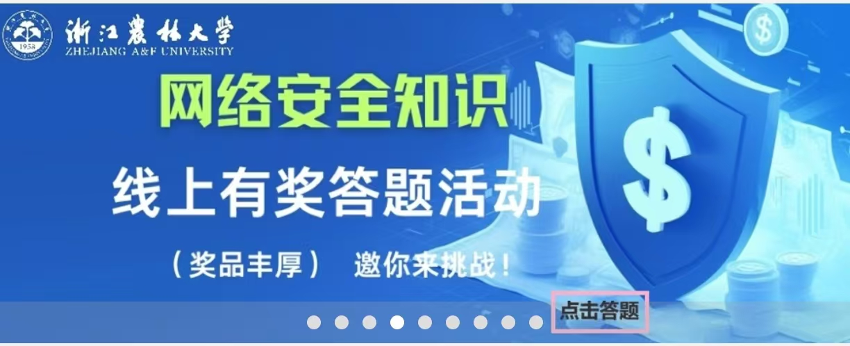 為擴大網絡安全宣傳的廣度和深度,信息中心在智慧浙農林APP上推出了“網絡安全知識線上有獎答題”活動。題目內容涵蓋了網絡安全的基本概念、常見風險、防范措施等多個方面,旨在通過輕松愉快的答題過程,幫助師生鞏固和拓展網絡安全知識。