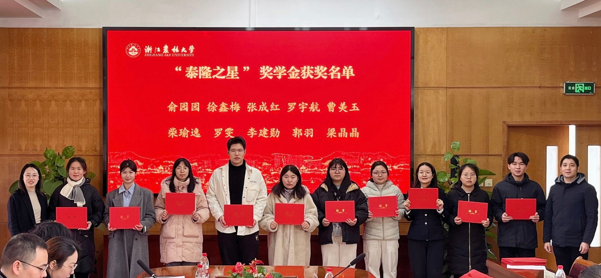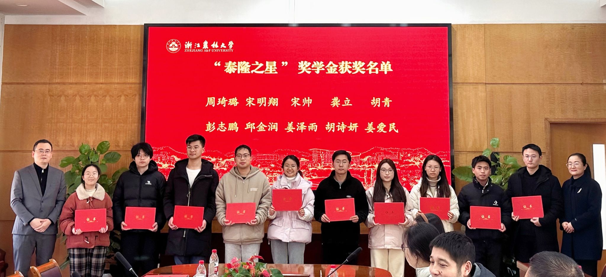 12月19日,2024年浙江農林大學“泰隆之星”獎學金頒獎儀式舉行。