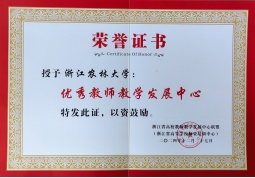 浙江農林大學教學質量監測與評估中心、教師教學發展中心憑借其在質量保障體系建設和教師教學發展領域卓越表現,榮膺浙江省“優秀質量保障與評價單位”和浙江省“優秀教師教學發展中心”兩項殊榮,成為全省6所同時摘得“雙優秀”榮譽的高校之一。教學質量監控與評估中心卓慶卿獲得“質量保障與評價先進個人”,教師教學發展中心黃陳躍獲得“教師教學發展工作先進個人”。